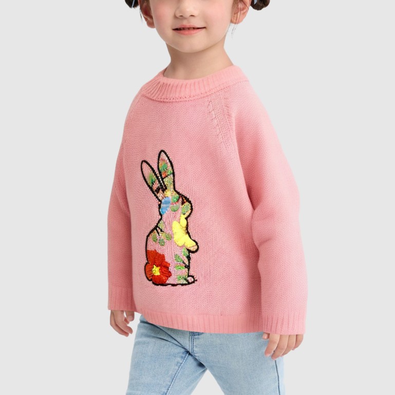 Embroidered rabbit baby's autumn and winter knitted sweater