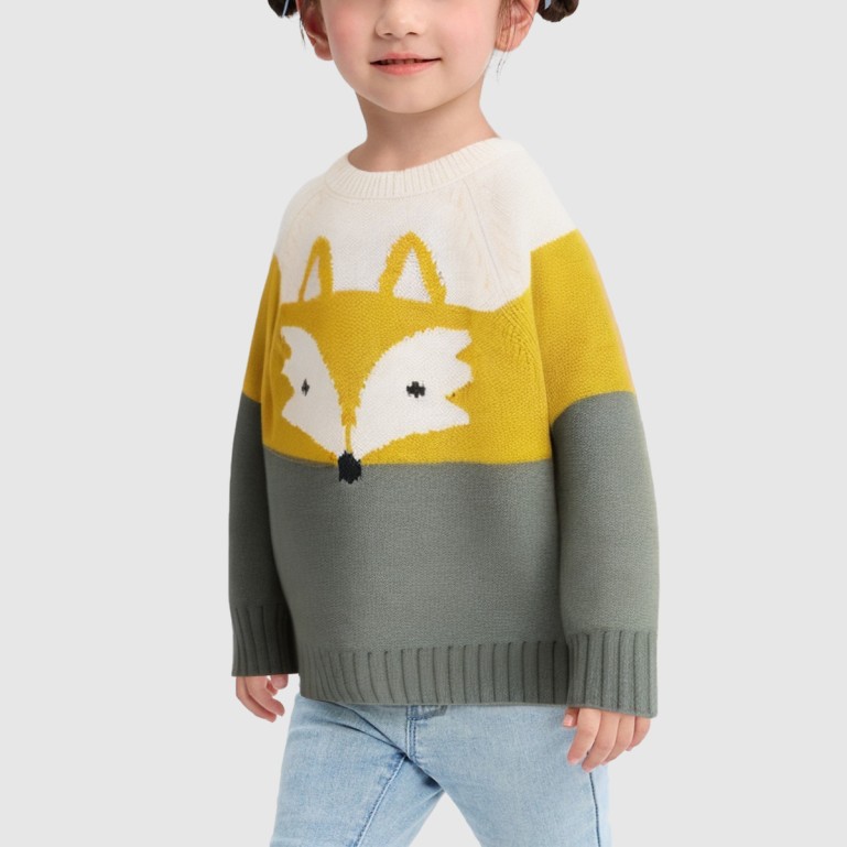This sweater is crafted from soft and comfortable 100% acrylic fabric, providing warmth and a gentle feel against your baby's delicate skin. It's perfect for newborns and infants. The unique fox pattern on the front adds a playful and adorable touch, enhancing its childlike charm. The overall loose fit allows for easy movement while offering excellent warmth, making it ideal for everyday winter wear or indoor/outdoor activities. Crafted with fine knitting techniques for durability and washability, it features secure snap button closures at key points for easy dressing and undressing.