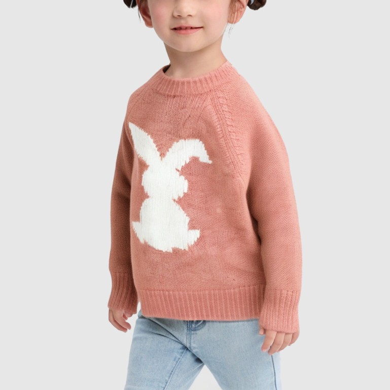 Cute bunny girl's thickened knitted pullover sweater