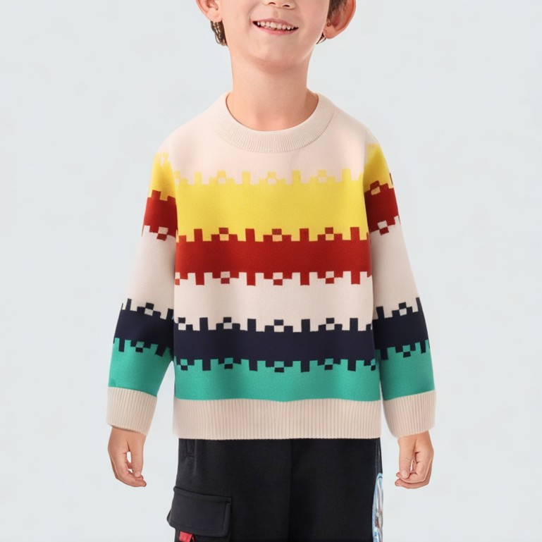 This sweater features a polyester-cotton blend fabric that is soft, comfortable, and warm, making it ideal for autumn and winter wear. The thickened design offers enhanced insulation while maintaining breathability, allowing children to move freely without feeling stuffy. The pullover style features a sailor-style round neckline for easy on-and-off wear. Its simple, elegant silhouette is enhanced by classic stripes that add a playful, fashionable touch. Perfect for everyday wear, outdoor activities, or casual outfits, it meets children's versatile styling needs.
