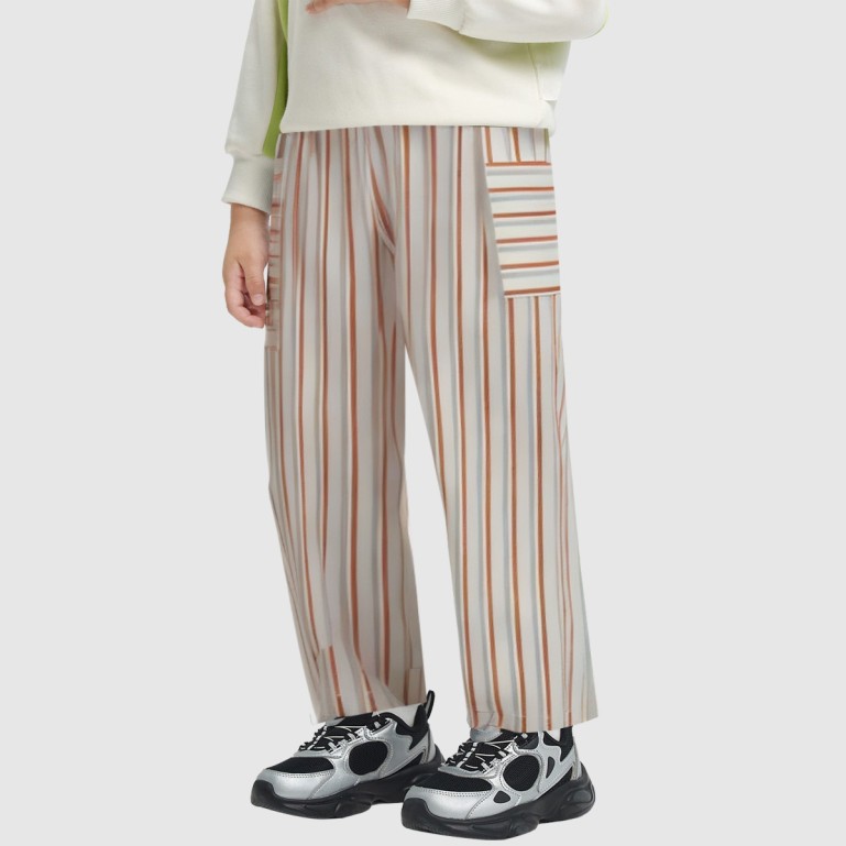 These pants feature a soft cotton fabric that's comfortable and breathable, perfect for everyday wear and casual activities. The vibrant striped design pairs with side pockets for storing small items, blending practicality with style. Eco-friendly materials ensure safe and healthy wear for children.
