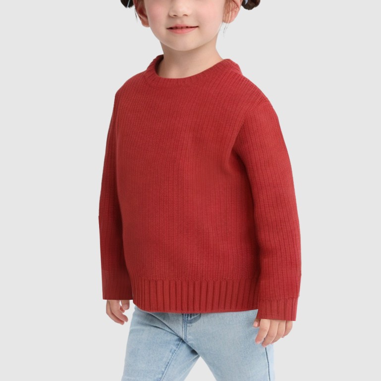 This girls' knit sweater is crafted from high-quality acrylic fabric, offering substantial warmth and a soft, cozy feel perfect for winter wear. Its simple, elegant crew neck design pairs with a regular long-sleeve cut for ease of movement, while the overall relaxed fit ensures comfort. Featuring a classic solid red color, this versatile piece can be worn alone or layered under outerwear, blending fashion-forward style with practicality. The computer-knit construction ensures fine, even stitching for exceptional durability.