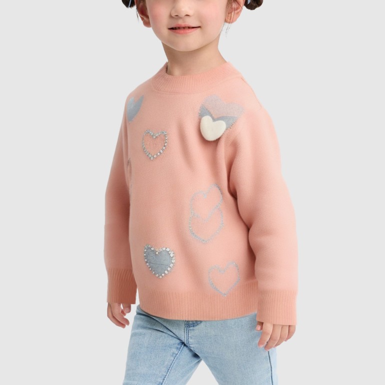 Heart-shaped pattern solid color knitted sweater