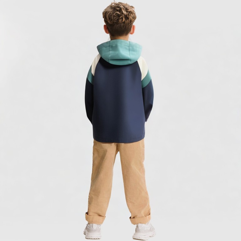 This jacket features high-quality polyester fabric that is soft, durable, comfortable, and warm, making it ideal for cold seasons. The inner layer is filled with all-polyester material, offering substantial warmth while maintaining lightness and insulation, perfect for everyday wear and outdoor activities. Designed with a hooded style, it effectively blocks wind and retains heat. The zippered placket allows for easy on/off, enhancing convenience. The overall silhouette features regular sleeves and standard length, with a drawstring waist adding structure to highlight the tailored cut and contemporary style. The garment incorporates a color-blocked design for visual interest and layered appeal, complemented by practical pockets for storing small items. Utilizing eco-friendly dyeing techniques, the vibrant colors remain long-lasting, balancing safety with fashion.