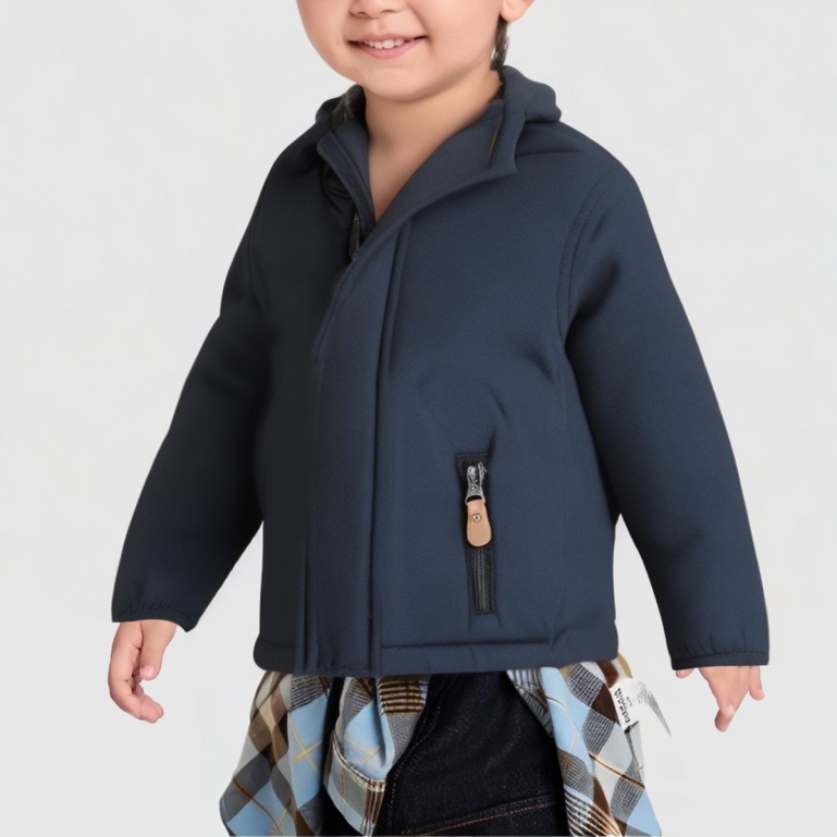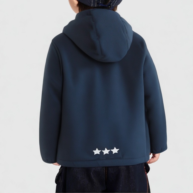 This jacket features a spandex-polyester blend fabric that is soft and comfortable, offering excellent breathability, water resistance, and windproof properties—perfect for spring and fall outdoor activities. The fleece-lined interior provides cozy warmth for your little one. The hooded design effectively protects the head, while the front zipper ensures easy on-and-off wear. Cartoon prints add a playful touch.