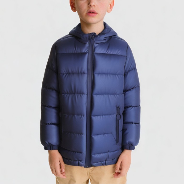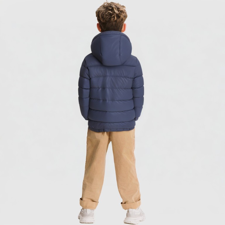 This jacket features a polyester-cotton blend fabric that is soft, durable, and comfortable to the touch. Its full polyester fleece lining provides excellent warmth and insulation while remaining lightweight and non-bulky, making it ideal for children's daily wear and outdoor activities. Designed with regular sleeves and a standard length, it allows for unrestricted movement. The attached hood effectively blocks wind and retains heat, with adjustable straps to adapt to varying weather conditions. A zipper closure at the front allows for easy on/off. The jacket's overall construction utilizes patchwork techniques to enhance its three-dimensional look and fashion appeal, while decorative zippers add both practicality and visual interest. The product features wrinkle-resistant, breathable, quick-drying, and eco-friendly properties, making it suitable for diverse winter scenarios.