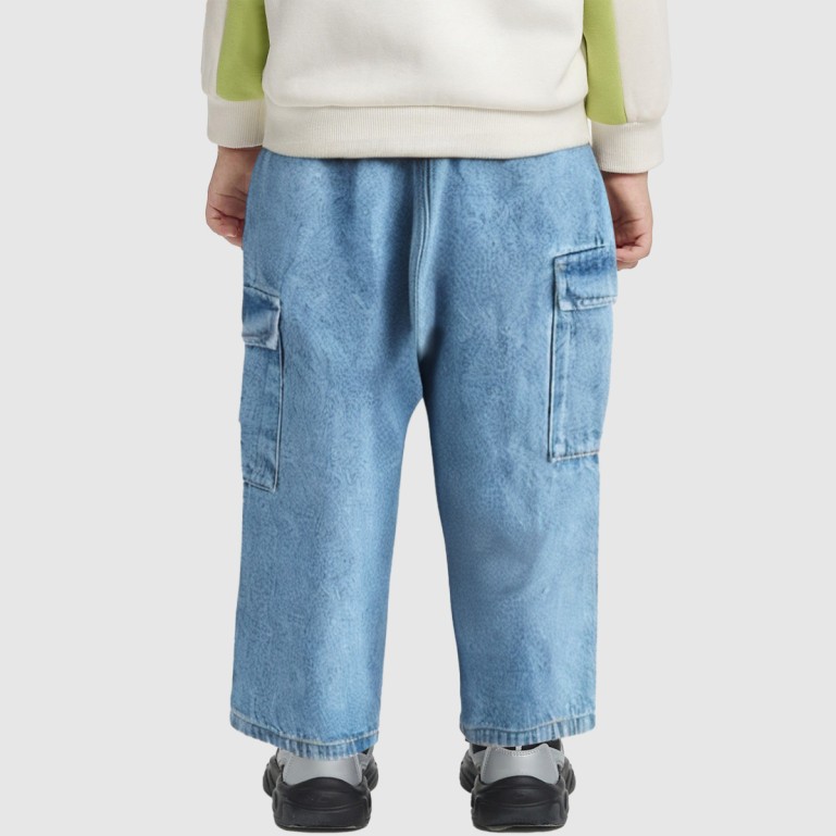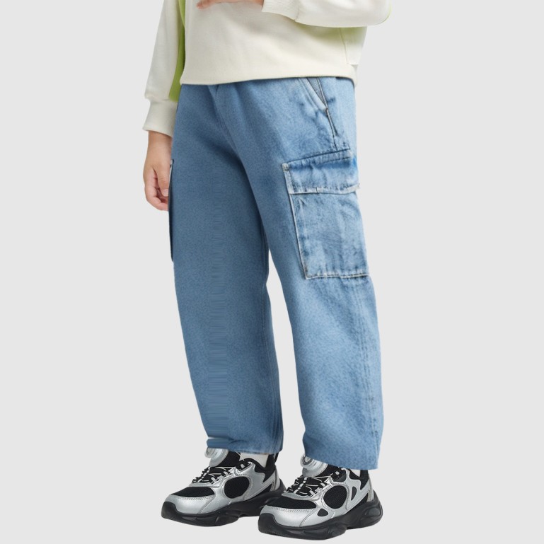 Crafted from 100% pure cotton denim, these pants offer a crisp yet breathable texture perfect for everyday wear. The straight-leg wide-leg design ensures comfortable movement without tightness or restriction. Featuring an all-over solid blue washed effect, they deliver a natural vintage feel. Paired with an elastic waistband for easy on-and-off wear, they suit various body types and occasions.