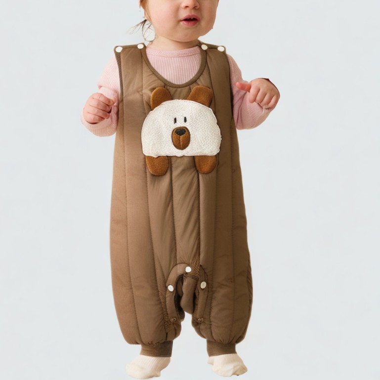 These pants are made from a thickened, finely woven fabric that is soft and comfortable, providing comprehensive warmth. The sleeveless design and footed style allow for easy movement while keeping your baby warm. The cartoon print adds a touch of fun, making them suitable for everyday wear at home or outdoors. The secure snap closure makes them easy to put on and take off, ensuring your baby's safety.