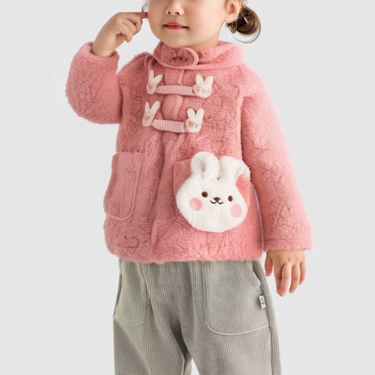 This jacket features a soft-to-the-touch, durable polyester-cotton blend fabric. Its thick wool lining boasts a 90% down content for exceptional warmth, making it ideal for cold winter wear. The adorable cartoon print adds playful charm and childlike appeal, perfect for everyday outfits and outdoor adventures. The O-neck collar and regular sleeves ensure comfortable, unrestricted wear, while the relaxed fit accommodates active toddlers and infants. A single-button placket facilitates easy dressing and undressing, maintaining a clean, minimalist aesthetic. The combination of fine-spun fabric and print technology balances breathability with durability, keeping children warm and comfortable.